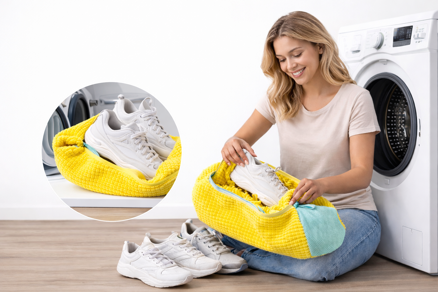 Puis-je laver les deux chaussures dans un seul sac ?